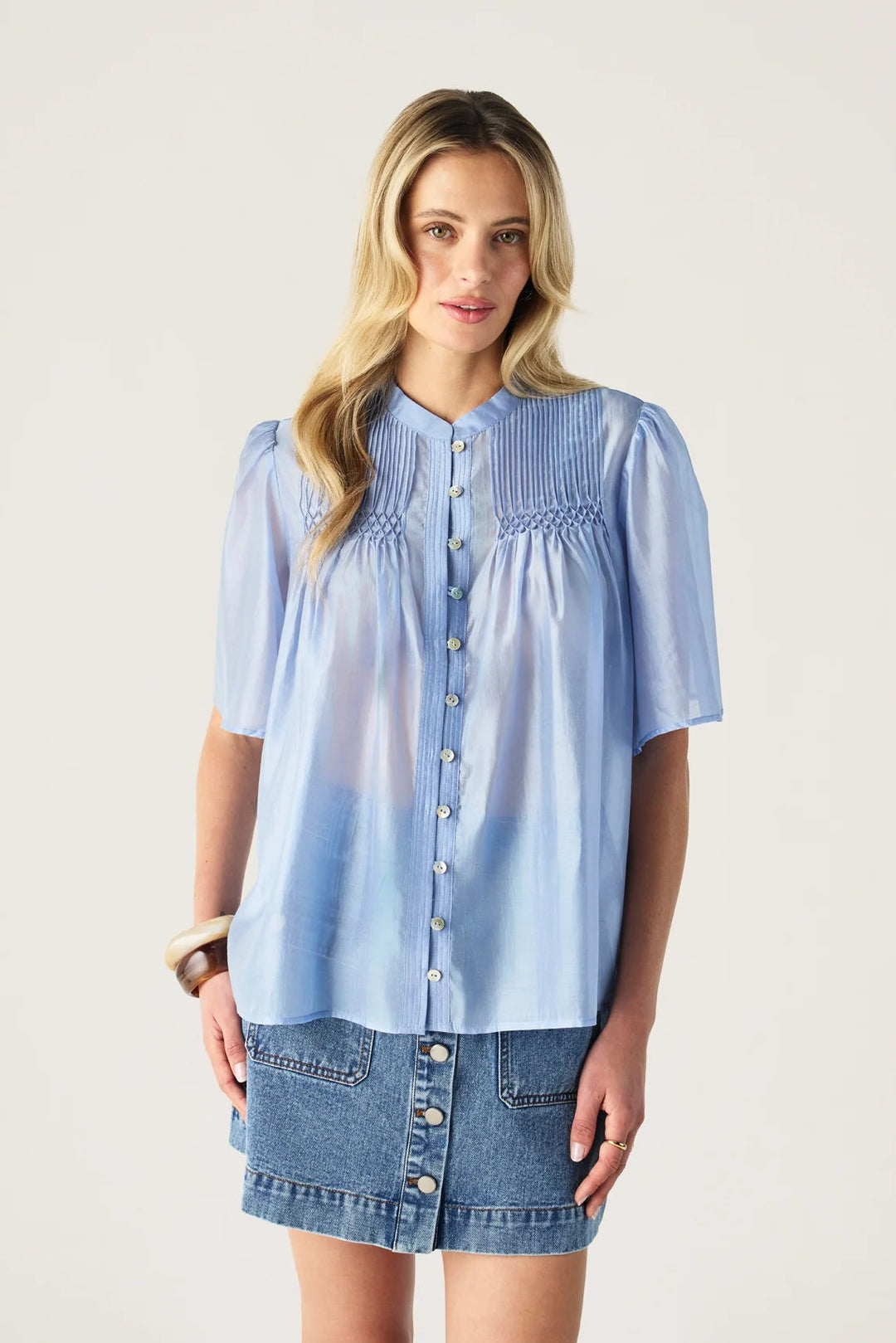 Romy Short Sleeve Blouse - Blue Aura