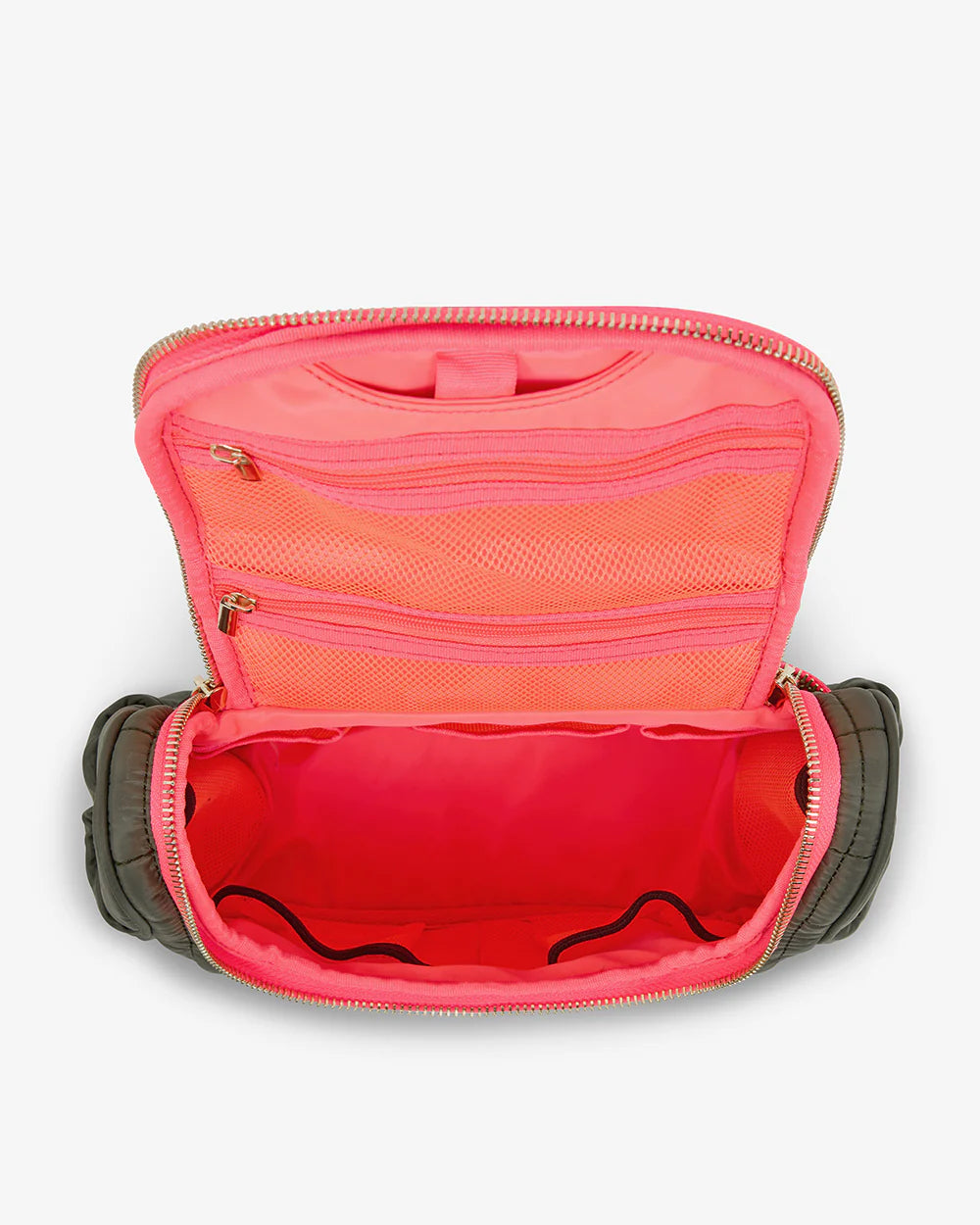 With its clever upright design, the Essentials Bag keeps your daily essentials neat, tidy and easy to access - whether at home or on the go. Ample pockets and a hidden, fold-away hanging hook make organisation effortless, so you can grab what you need in seconds.