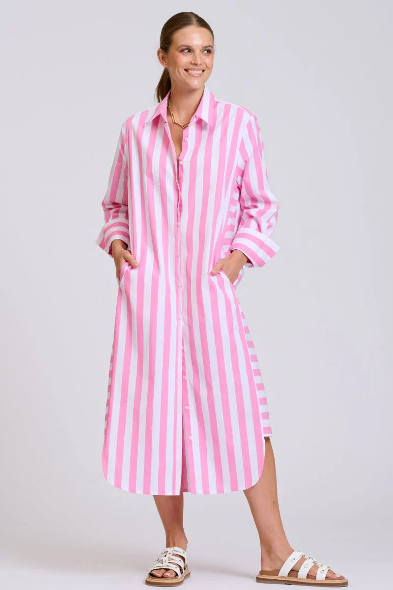 The Andrea Shirtdress - Pink Wide Stripe