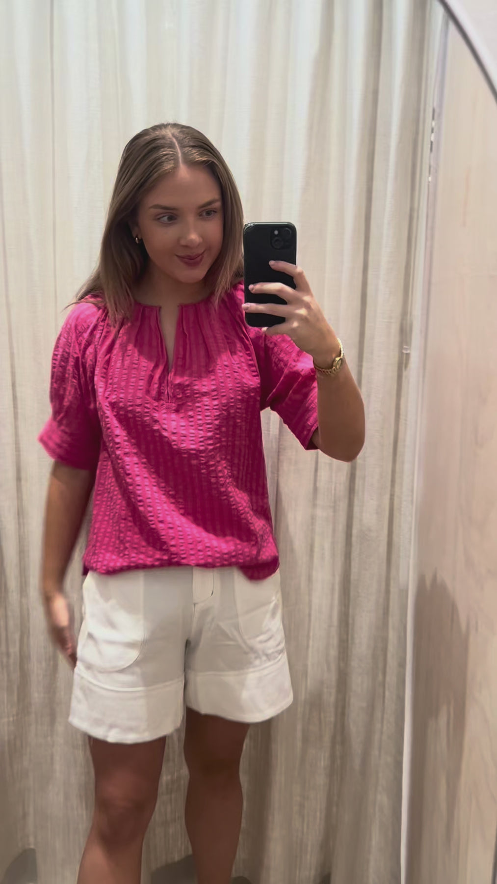 -Curved hip pockets.