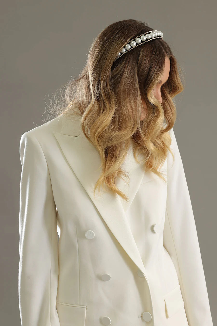 The Sana Headband in Black Pearl adds a touch of elegant drama, featuring pearl and jewel detailing set on a black velvet headband. Perfect for event styling, the fitted headband ensures an effortless feel while tying an outfit together with an elegant finish.
