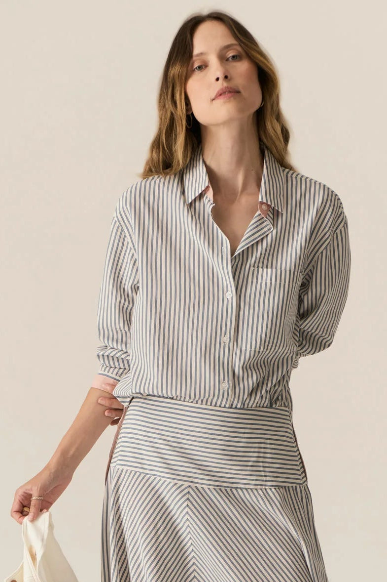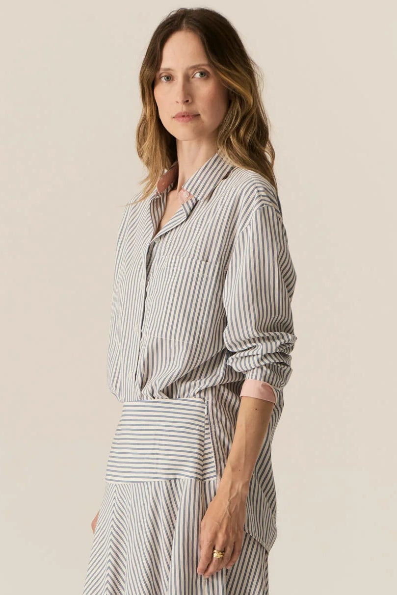 It’s all about the details with our Vera Long Sleeve Shirt, made from a stunning light blue pinstripe, with contrast pink details inside the cuffs, collar and hem.