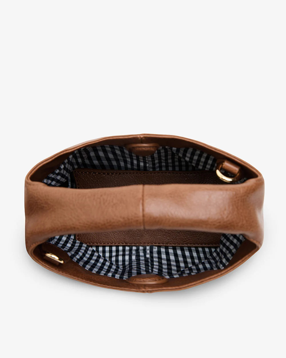The Elms+King Linton Crossbody is made from premium 100% recycled polyurethane and features a blue & white gingham lining. It's a compact bag that features an adjustable and removable crossbody strap. The centre compartment is secured with a covered mag closure.
