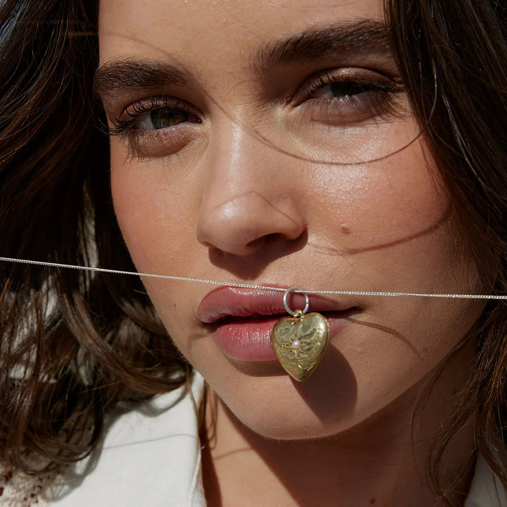 Handcrafted brass locket with pearl feature. Hinged and latched to include your favourite photo. Part of our Oceana collection, a collection inspired by our love of the ocean and the treasures that lie within.