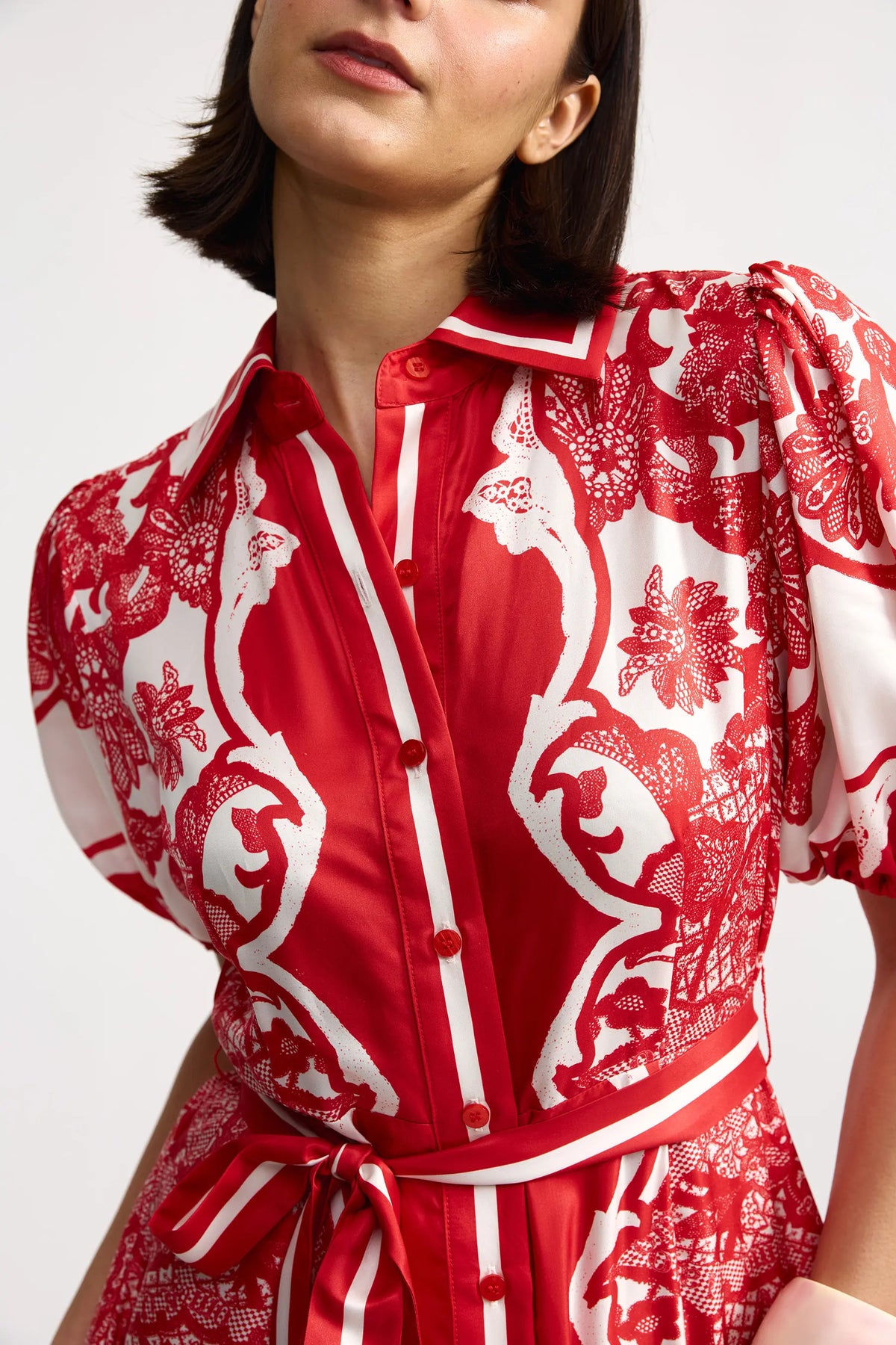 Detachable self tie belt Puff sleeve Elasticated cuff Straight fit through body