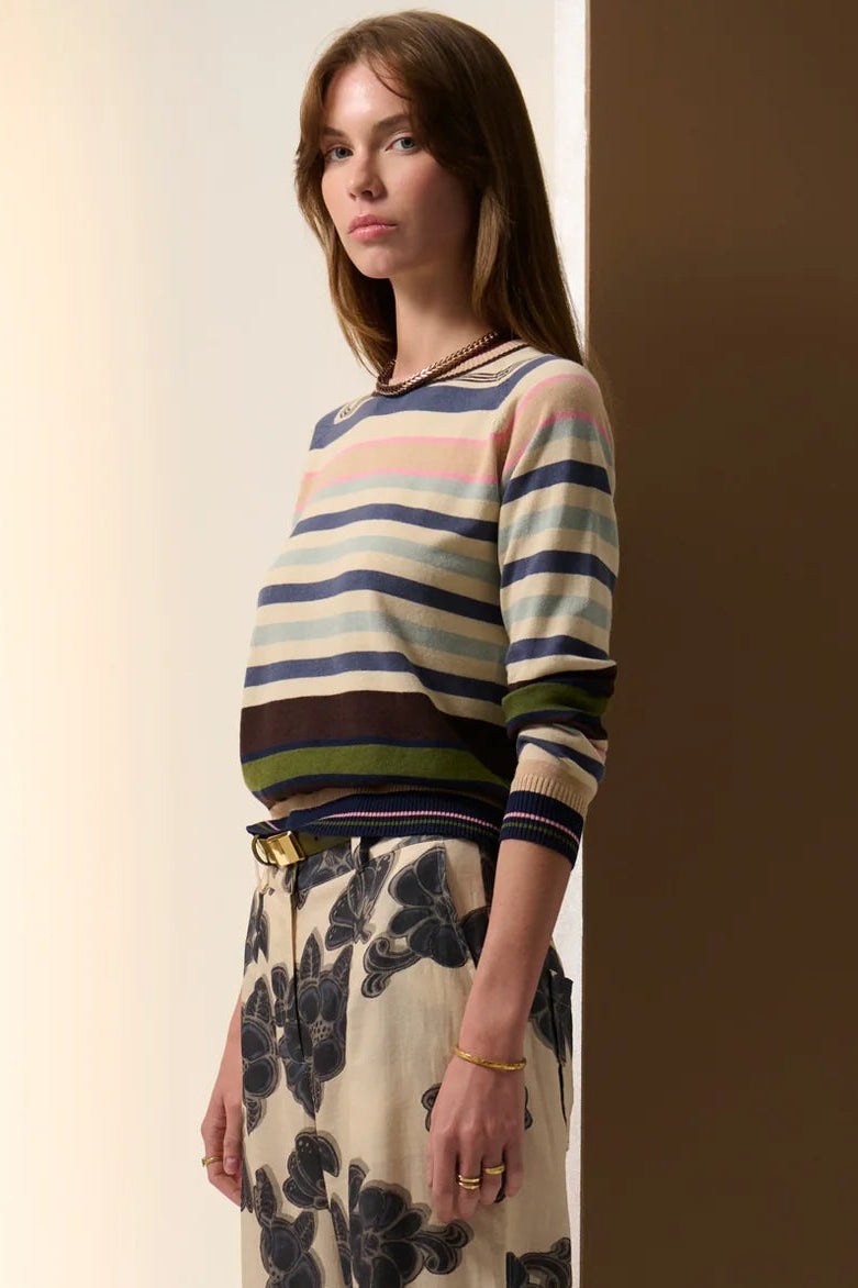 Made from a Linen and Cotton blend, the Sela Multi Striped Knit is back in a new colourway for Prefall 2026! This is the perfect lightweight, long-sleeved piece for layering in transseasonal weather, now in shades of blue, pink and green.